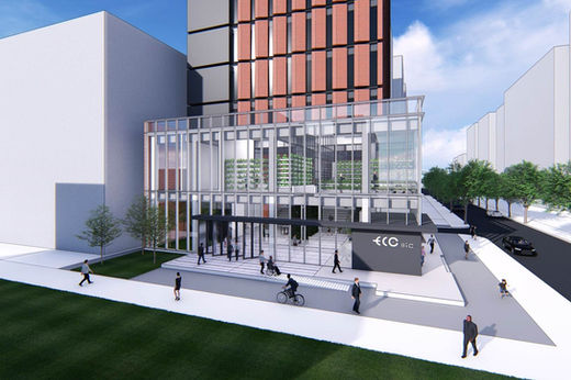 단면적으로 세영역으로 나뉘어 저층부는 로비공간과 스마트팜이 엮어 독특한 실내분위기를 만들며 지상의 연결녹지 및 보행자통로와 연계될 수 있게 하였으며, 중간층 부분은 사무영역, 상층부는 라운지형 식당, 게스트룸과 임원실이 동선이 섞이지 않으며 채광과 뷰를 누릴수 있도록 배치되었습니다. [공동설계 : 전용석_홍익대학교]